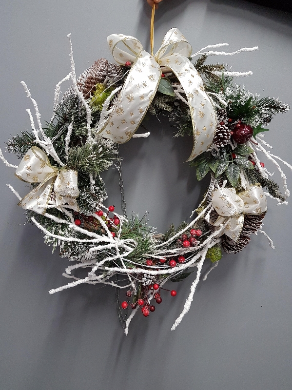 Everlasting Christmas Door Wreaths - decorated with Berries, Pine cones, Cinnamon sticks etc. Styles may vary slightly.