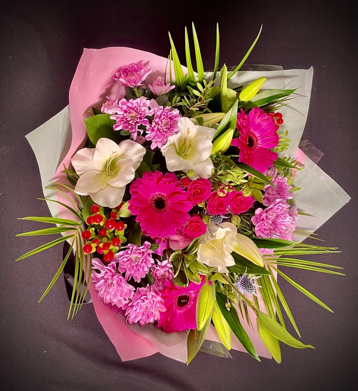 Please Note that due to the seasonal availability of flowers it may be necessary to vary individual stems from those shown. Our skilled florists may substitute flowers for one similar in style, quality and value. Where our designs include a sundry item such as a vase or basket it may not always be possible to include the exact item as displayed. If such an occasion arises we will make every effort to replace the item with a suitable alternative.