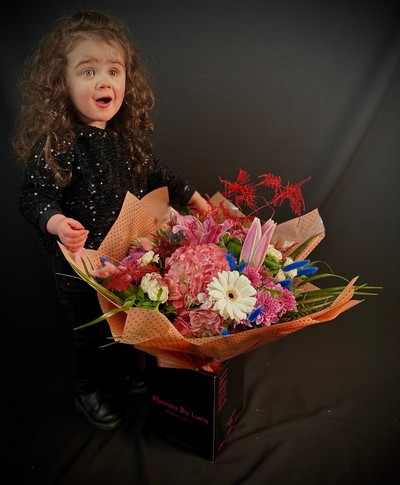 Step into a realm of pure enchantment with our exquisite creation, the Wonder Woman bouquet showcases a magnificent collection of pinks Creams Lillies Hyndreas and much more,carefully curated to evoke a sense of elegance, and timeless beauty.