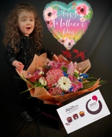 Package also includes a heart shaped balloon and a box of Lily O Brien Chocolates.